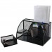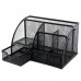 6 Compartment Desk Organizer, Metal Mesh Combination Pen Holder Card Case Organizer (Black)