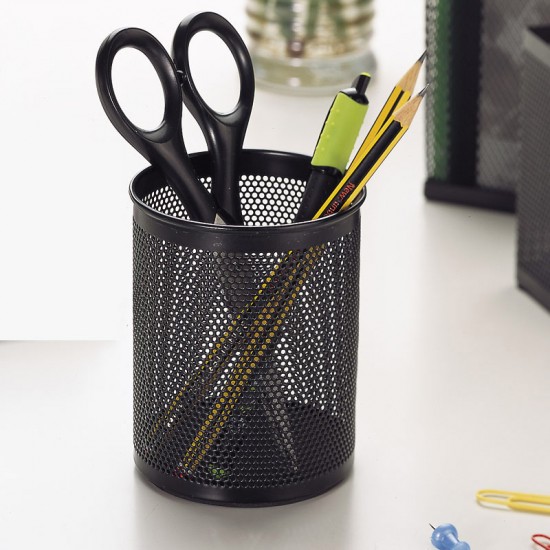 Pencil cup holder offers an elegant way to keep your writing utensils handy. Steel mesh features double-rimmed, smooth edges and a powder-coat finish. Pencil cub holder is recyclable.